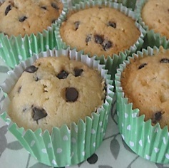 Cake baked in paper cups that is less sweet, dense and has dry texture. It has the fillings of choco-chips.