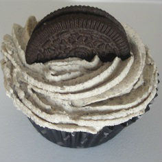 Cake baked in liners that is light and moist with cream cheese frosting and crumbs. Refer to the