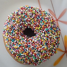 Colourful sugar sprinkles over this chocolate coated ring adds taste and fun to all choco lovers… colourful energy to brighten the day.